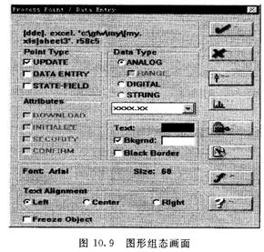 數據顯示:選擇Tool-Toolbars-Dynamic后,按下"485"按鈕,進(jìn)入Point Name Se-lection畫(huà)面(見(jiàn)圖10.10), Server= [modbtis ] . modbus, Point Name= [modbus].modbus, Select Tag=變量名.out。