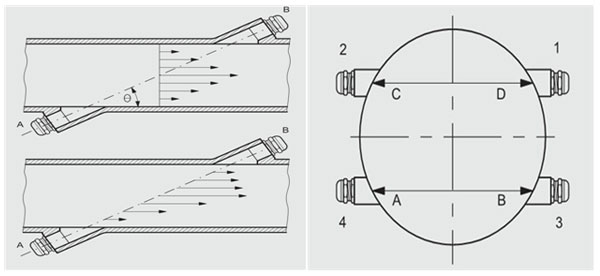 主要技術(shù)特點(diǎn)如下: ·德國ACAM專(zhuān)用時(shí)間數字轉換電路,分辨率50ps; ·美國TI超強傳感器發(fā)射功率,穿透15mm碳鋼板; ·美國專(zhuān)用低噪聲前置放大器,0.8nv/Hz; ·美國ATMEL先進(jìn)的MAGE 1280系列微控制器; ·完全的獨立設計編程3種專(zhuān)利技術(shù); ·隔離RS485串口和脈沖輸出; ·抗工頻和變頻干擾; ·空管自動(dòng)判斷和故障判斷 ·可選配電源防雷和信號防雷 ·防爆等級:Exdib Ⅱ BT4 ·CMC認證:00000251 LSZ系列超聲波流量計 適用范圍: 城市給排水、江河水、海水及其他均質(zhì)流體,可測量含有固體物質(zhì)的污水,廣泛適用于管道、河道、渠道的流速和流量的測量。 功能: 測量、顯示管道內和渠道內液體的流速和流量、狀態(tài) 組成: 傳感器、變送器,安裝附件和電纜 主要性能指標: 超聲波流速傳感器: 測量原理:時(shí)差法、連續測量 測量聲道:1~7聲道 適應能力:可測量含有固體物質(zhì)的污水 測量精度:1.0% 流速范圍:0.01m/s---30m/s 測量管徑范圍:25---5000mm 環(huán)境溫度:-20—70℃ 工作溫度:-20—70℃ 介質(zhì)溫度:-20—80℃ 防護等級:IP68 超聲波液位傳感器: 測量精度:1.0% 測量范圍:0.01m---2m 分辨率: 1.0mm 環(huán)境溫度:-20—70℃ 工作溫度:-20—70℃ 介質(zhì)溫度:-20—80℃ 防護等級:IP68 主機: 數據顯示:LCD四行中文液晶顯示 電源電壓:AC220V±20% 整機功耗:<20W 顯示內容:流量、累積流量、流速、液位等 輸出信號:4—20Ma,脈沖、RS232/485 環(huán)境溫度:-20—70℃ 工作溫度:-20—70℃ 相對濕度:10—90% 防護等級:IP65 安裝方式:壁掛式 主機與傳感器距離:《200米 可選配彩色人機界面功能如下: 真彩TFT 26萬(wàn)色 640×480像素 觸摸屏 電阻式 256MByte內部電子盤(pán)(可外擴U盤(pán)或CF卡) USB1.1主、從機接口各1個(gè) CF接口1個(gè) 10/100M工業(yè)以太網(wǎng)接口1個(gè) (支持VNC遠程桌面) 管道式二聲道測量示意(型號:LSZ-1X-BM2C) |